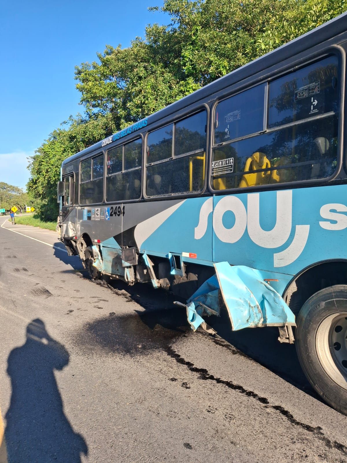 O Corpo de Bombeiros foi acionado por volta das 6h30 para atender um acidente de trânsito envolvendo um ônibus e um veículo de passeio na rodovia BR-101, em São Sebastião, nas proximidades do bairro Camburi. A ocorrência contou com apoio do Samu.