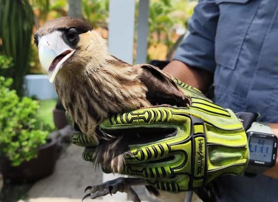 Bombeiros resgatam carcará ferido no bairro Capricórnio, em Caraguatatuba