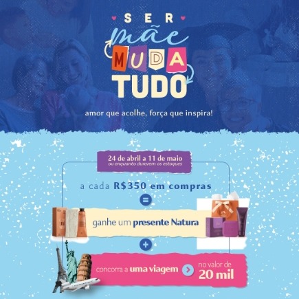 Durante a campanha, a cada R$ 350 em compras nas lojas participantes, os clientes podem trocar notas fiscais por um presente exclusivo da Natura, limitado a dois brindes por CPF e sujeito à disponibilidade de estoque. Com o mesmo valor, o consumidor também adquire um número da sorte para participar do sorteio do vale-viagem. A troca pode ser feita no balcão próximo às Lojas Renner ou pelo site promocacao.taubateshopping.com.br.