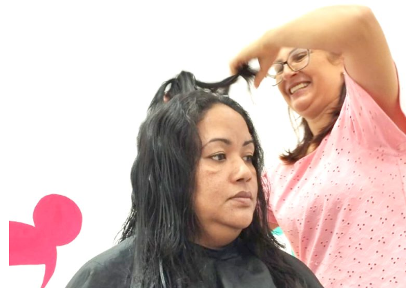 Durante a atividade, cerca de 30 mães receberam cortes de cabelo e escovas gratuitos, oferecidos por profissionais da área da beleza que se voluntariaram para a ação. Enquanto acompanhavam seus filhos nos atendimentos, elas foram presenteadas com esse gesto de carinho e atenção no mês dedicado às mães.