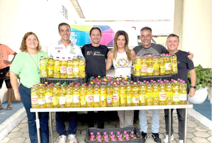 Na manhã desta quarta-feira (15), a solidariedade ganhou destaque após a terceira etapa do Circuito Corrida de Rua, realizada pela Secretaria de Esportes e Lazer (Semelp). O evento, que incentiva a prática esportiva e valoriza a corrida de rua, também possui um forte cunho social: 400 litros de óleo arrecadados foram entregues pelo secretário de Esportes, Alcides Barbosa "Ju", e pelo secretário adjunto, Beto Figueira, à primeira-dama e presidente do Fundo Social de Solidariedade, Patrícia Amadei, na Fábrica da Solidariedade.