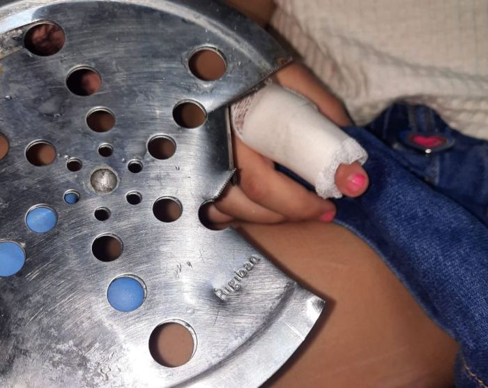 Uma criança de 3 anos recebeu atendimento do Corpo de Bombeiros de Ubatuba na noite de sábado (15), por volta das 21h40, depois de chegar ao quartel com um ralo de banheiro preso ao dedo. A mãe buscou ajuda ao perceber que o inchaço estava dificultando a circulação no local.