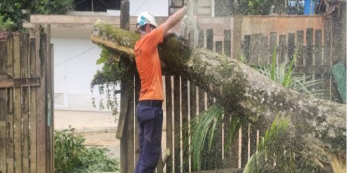 Na madrugada desta sexta-feira uma chuva forte, acompanhada de ventos, foi registrada em todo o município de São Sebastião. As equipes passaram o dia retirando árvores que caíram na Costa Sul e monitorando o morro na Rua Antonio Tenório dos Santos, no Itatinga.
