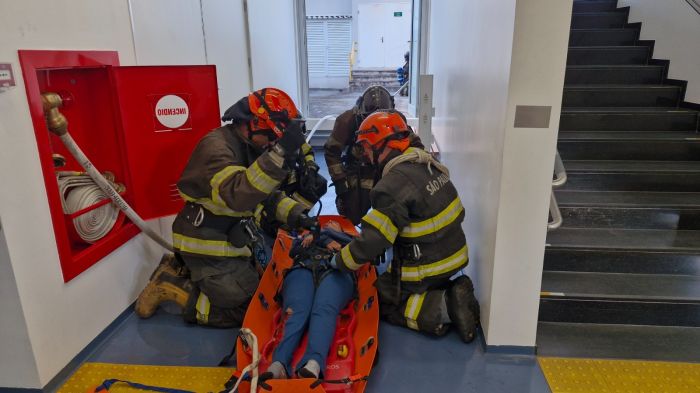 Durante o exercício, foram incluídas duas vítimas fictícias: uma com queimaduras leves e outra em estado grave, localizada desacordada no terraço. O Corpo de Bombeiros realizou o resgate utilizando um caminhão com escada articulada, enquanto o SAMU simulou o atendimento. A Defesa Civil atuou na evacuação e organização da cena.