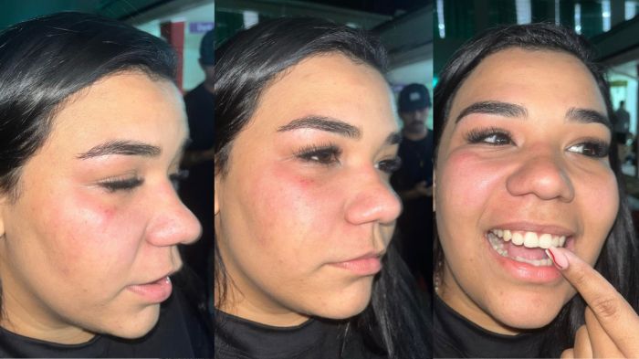 De acordo com o relato, a jovem levou um soco no rosto e outro que atingiu o nariz, o que quebrou um dente e causou um corte na boca.