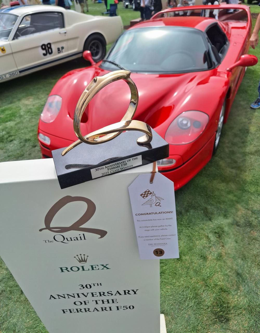 Única no mundo, a Ferrari F50 em exposição no CARDE, em Camposdo Jordão, foi premiada na estreia do Brasil no The Quail - A Motorsports Gathering, um dos eventos mais exclusivos da Monterey Car Week, realizada na Califórnia (EUA). O exemplar foi coroado como destaque da categoria que celebrou os 30 anos do superesportivo italiano por sua exclusividade: trata-se de um dos três protótipos fabricados antes da produção em série, diferente dos 349 modelos destinados a clientes.