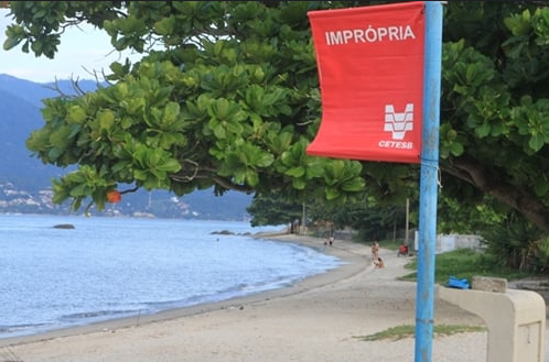 A Cetesb recomenda evitar o banho de mar em praias sinalizadas como impróprias, pois a exposição à água contaminada pode oferecer riscos à saúde.