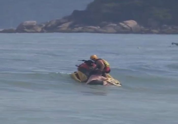 Durante o monitoramento da faixa de banho, um guarda-vidas percebeu rapidamente o risco e utilizou uma moto aquática para alcançar a vítima, que estava sendo levada pela correnteza e não conseguia retornar por conta própria. O resgate foi feito em poucos segundos, evitando que o caso evoluísse para uma situação grave.