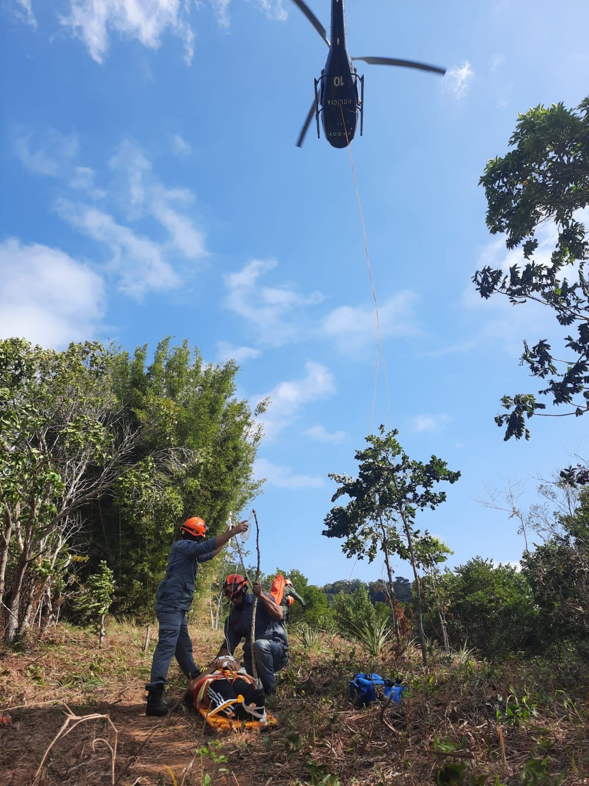 Diante da complexidade do resgate e da impossibilidade de remoção por terra, a equipe acionou o helicóptero Águia, que realizou o içamento da vítima em uma manobra delicada, exigindo alto nível de precisão e experiência dos profissionais envolvidos.