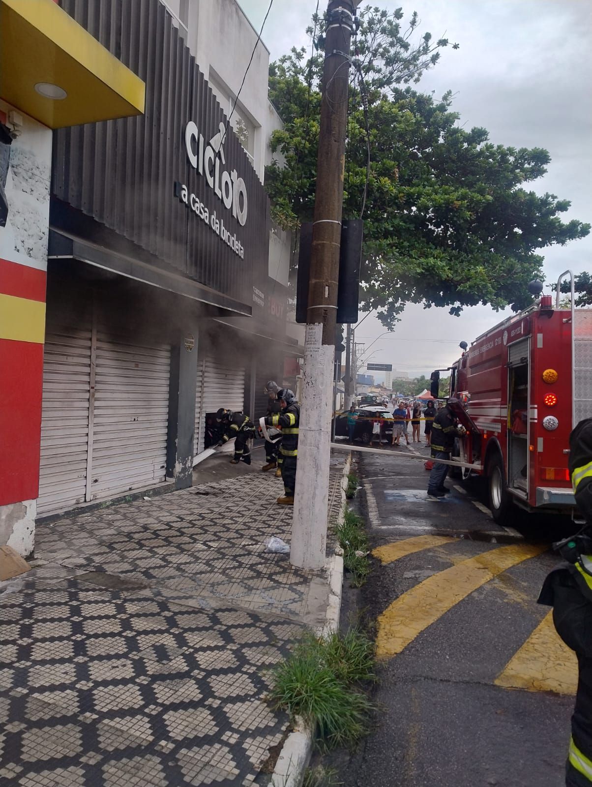 Para o controle das chamas, foram utilizados dois caminhões de combate a incêndio e uma unidade de resgate. No interior do imóvel, os bombeiros encontraram grande quantidade de fumaça e alta carga de incêndio, devido aos materiais característicos da atividade comercial e ao armazenamento de bicicletas elétricas.