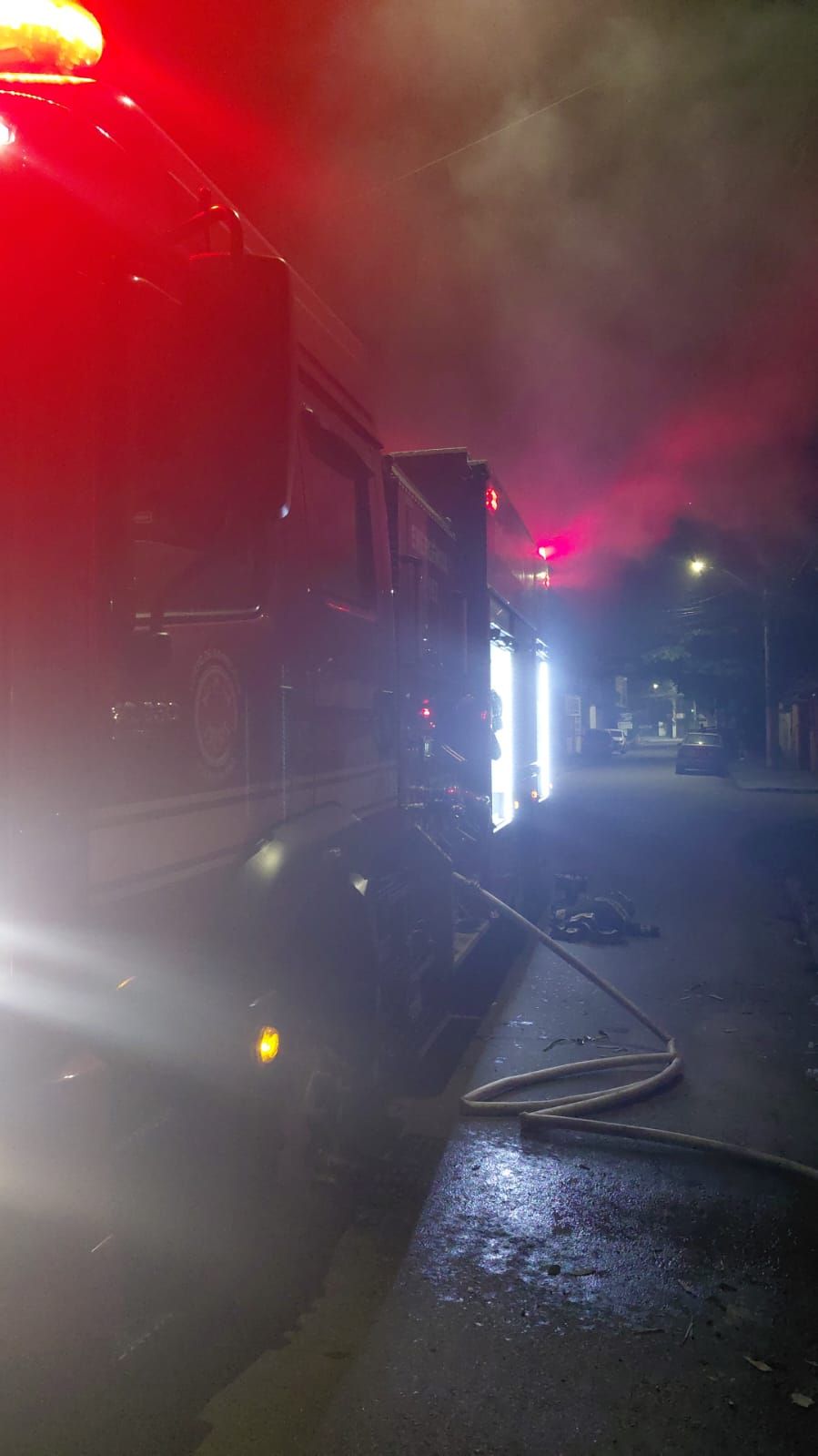 De acordo com as primeiras informações, o fogo se espalhou rapidamente e tomou toda a estrutura do imóvel antes da chegada dos bombeiros. As equipes atuaram para controlar o incêndio e impedir que as chamas atingissem residências próximas.