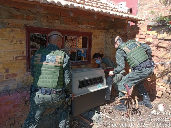 Os policiais se deslocaram até o local junto com uma veterinária do IBAMA, que fez a identificação do animal e acompanhou o resgate. O lobo-guará permaneceu sob os cuidados dos profissionais do instituto para avaliação e tratamento.