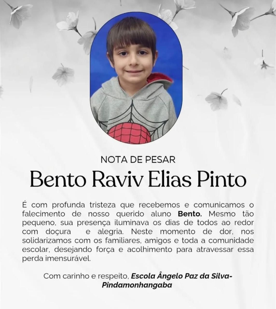 A criança era moradora de Pindamonhangaba, do bairro Cidade Jardim, e estudava na escola Ângelo Paz da Silva. Nas redes sociais, a instituição publicou uma nota de pesar.