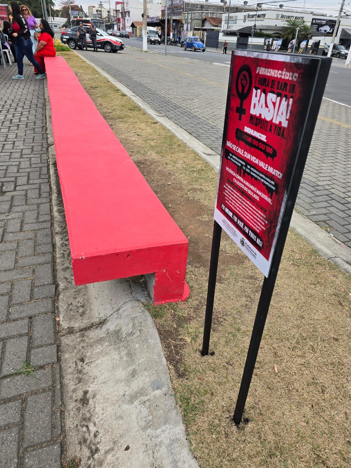 Durante o evento, foram divulgados os principais números de denúncia: 100 (Direitos Humanos), 180 (Violência Contra a Mulher), 190 (Polícia Militar) e 153 (Guarda Civil Metropolitana). Também foi apresentado o projeto Banco Vermelho, previsto na Lei Municipal 122/2024, de autoria da então vereadora Regininha. A proposta prevê a instalação de bancos vermelhos em espaços públicos, com frases de alerta, como "Ligue 180", reforçando a reflexão sobre a violência de gênero. O projeto faz parte de uma campanha internacional já adotada em várias cidades brasileiras.