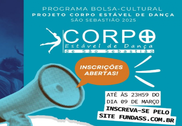 Estão abertas as inscrições para o Chamamento Público de profissionais de dança interessados em receber bolsas por meio do Programa Bolsa-Cultural - Projeto Corpo Estável de Dança de São Sebastião 2025.