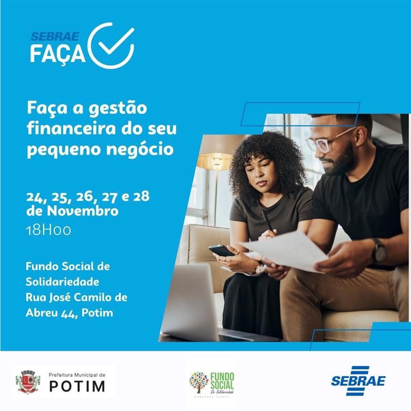 A primeira trilha será sobre Gestão Financeira e acontecerá entre os dias 24 e 28 de novembro, no Centro de Capacitação Profissional do Fundo Social de Solidariedade de Potim. O tema abordado será "Faça a gestão financeira do seu pequeno negócio".