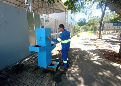 Os trabalhos incluem a pintura padronizada dos equipamentos, facilitando a identificação pelos usuários e contribuindo para a conservação das estruturas. Além da melhoria visual, a ação também busca aumentar a durabilidade dos bebedouros e garantir melhores condições de uso no dia a dia.