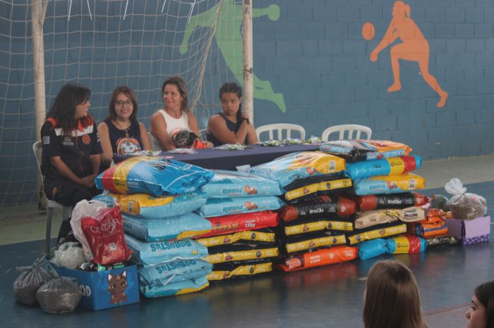 Durante o encontro, a médica veterinária Fernanda Mussi explicou o papel da Defesa Animal, destacando ações de resgate, campanhas educativas e a importância da participação social no combate aos maus-tratos. Os estudantes do 7º ano apresentaram o projeto Rabisco Animal: Solidariedade e Consciência em Ação, que envolveu pais, professores e comunidade em uma campanha de arrecadação de ração. O resultado foi a doação de aproximadamente 450 kg, destinados ao Projeto Antonieta.