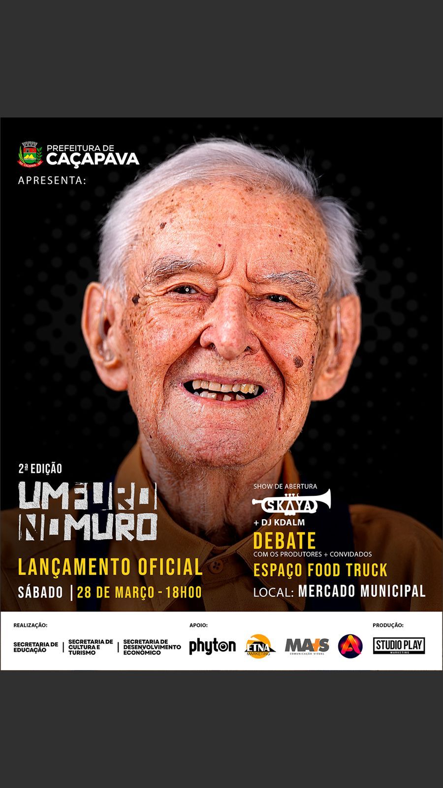 Lançamento "Um Furo no Muro" Data: 28 de março Horário: 18h Local: Mercado Municipal de Caçapava Entrada: gratuita