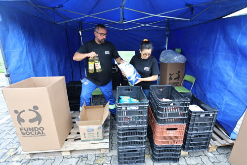 Os itens seguiram ao Litoral Norte pela manhã, com alimentos não perecíveis e água sanitária reunidos em ação conjunta com a Defesa Civil.