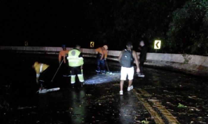 Na serra entre Maresias e Boiçucanga, uma árvore de grande porte caiu no km 159 da Rodovia SP-55, bloqueando totalmente a pista. A via foi liberada por volta das 22h, após a atuação do Departamento de Estradas de Rodagem (DER) e da Defesa Civil. Quedas de árvores também foram registradas nos bairros de Boiçucanga e Cambury.