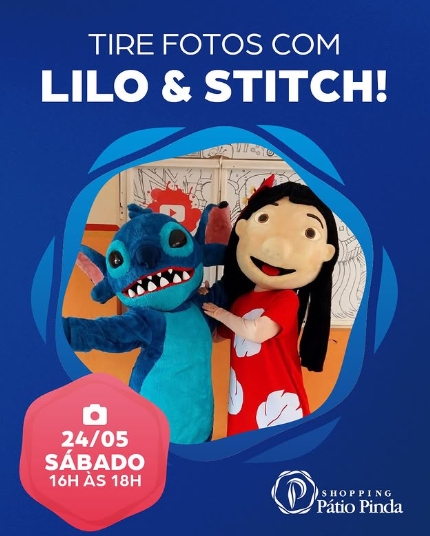O Shopping Pátio Pinda vai realizar no próximo sábado (24), duas ações gratuitas voltadas ao público infantil como parte da programação de oficinas do mês de maio. A iniciativa inclui uma oficina de pintura no rosto e a presença dos personagens Lilo & Stitch, que irão interagir com o público e tirar fotos com os visitantes.