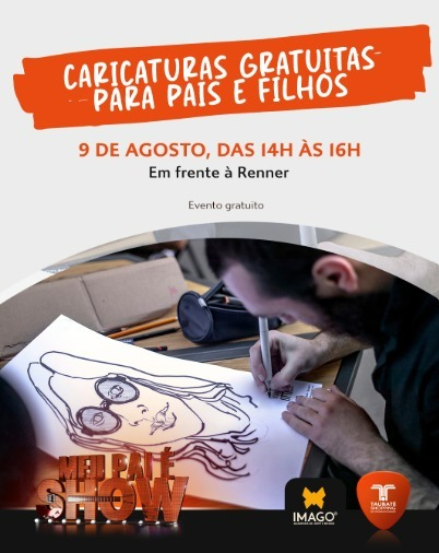Como parte da programação especial de Dia dos Pais, o Taubaté Shopping promove neste sábado (9), das 14h às 16h, uma ação gratuita voltada para toda a família: caricaturas ao vivo feitas por artistas da Academia de Arte e Design Imago.