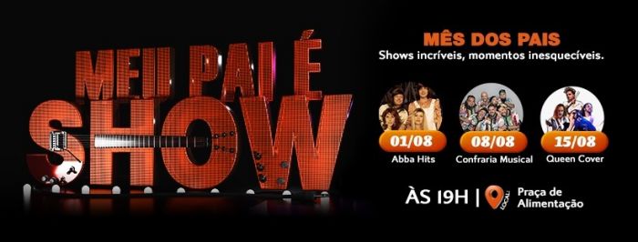 O Taubaté Shopping vai celebrar o mês dos pais com a campanha "Meu Pai é Show", que traz uma programação gratuita de apresentações musicais nas noites de sexta-feira, sempre às 19h, na Praça de Alimentação. A ação é promovida pelo shopping em parceria com o Grupo AD, que administra o espaço.