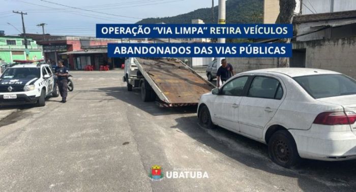 A Prefeitura de Ubatuba realizou mais uma edição da Operação "Via Limpa" na manhã desta quinta-feira, 5. Esta foi a segunda etapa da ação que é voltada à fiscalização e retirada de veículos abandonados nas vias públicas do município e acontece por meio de uma parceria entre a Diretoria de Trânsito e a Guarda Civil Municipal (GCM).