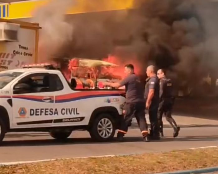 Uma van pegou fogo na manhã desta sexta-feira (19) enquanto estava estacionada em um posto de combustíveis localizado na Avenida Padroeira do Brasil, em Aparecida.