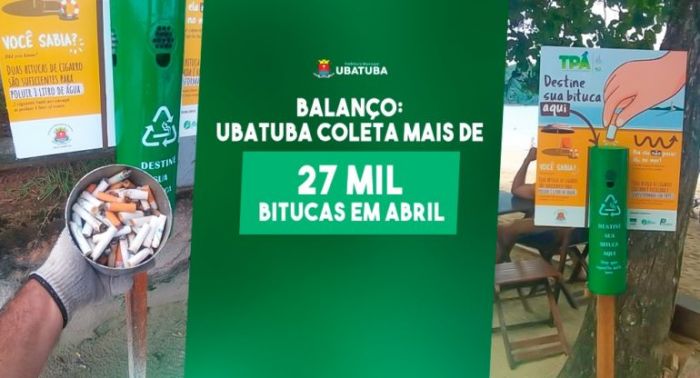 A Prefeitura de Ubatuba, em parceria com a Piato Recicla, realizou a segunda coleta de bitucas de cigarro dos coletores instalados na cidade em abril como parte do programa "Ubatuba sem bitucas". O resultado surpreendeu positivamente: foram recolhidas 27.505 bitucas - um aumento significativo em relação à coleta anterior, realizada em março. Já a soma dos dois meses totaliza mais de 50 mil bitucas coletadas.