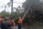 Duas árvores caíram na estrada da Minalba, em Campos do Jordão, após uma forte chuva na madrugada de sexta-feira (13), bloqueando o trânsito na região.