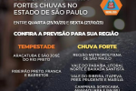 A previsão é de chuvas intensas e contínuas, acompanhadas por descargas elétricas, fortes rajadas de vento e granizo