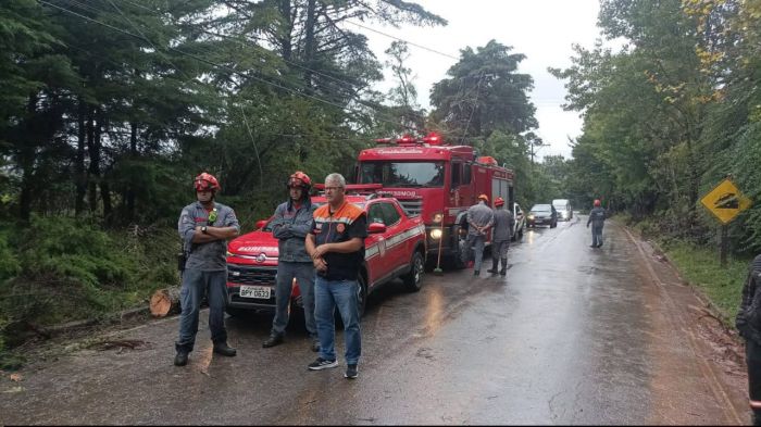 Equipes da Defesa Civil municipal, com apoio do Corpo de Bombeiros e da Secretaria de Serviços Públicos, realizaram a retirada das árvores e a desobstrução da estrada. O trabalho emergencial permitiu que o tráfego fosse totalmente restabelecido por volta das 8h40.