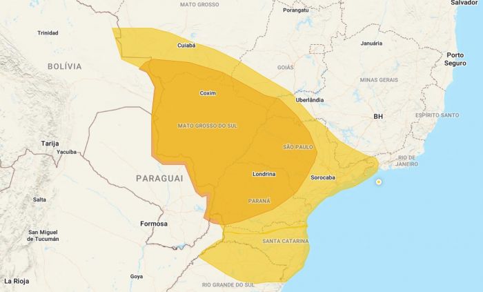 O aviso amarelo indica atenção: há risco, mas a chance de danos severos é moderada. A recomendação é que a população acompanhe as atualizações e siga as orientações das autoridades.