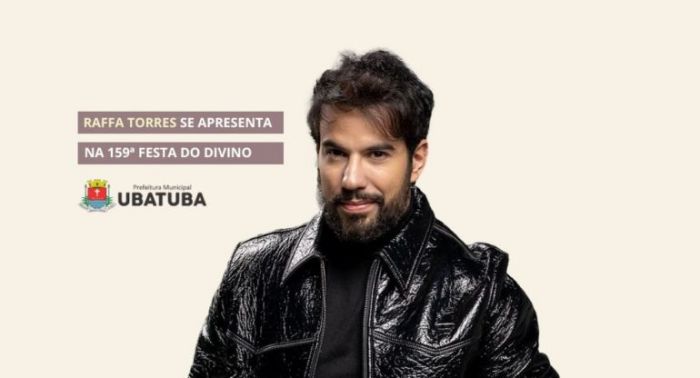 A 159ª edição da Festa do Divino Espírito Santo de Ubatuba recebe, nesta sexta-feira, 18, o cantor Raffa Torres, com apresentação marcada para as 22h, na Praça da Matriz. O evento tem apoio da Prefeitura de Ubatuba por meio da Secretaria de Turismo (Setur) e Fundação de Arte e Cultura de Ubatuba (Fundart) e integra a programação cultural da festividade.