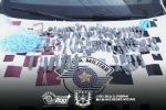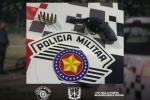 Força Tática localizou armas, equipamentos e grande quantidade de entorpecentes após perseguição a suspeitos.
