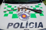 Espingarda calibre 36 foi encontrada em área de mata após denúncia de caça de animais silvestres.