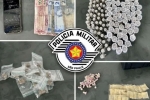Homem de 29 anos é preso em flagrante com mais de 200 porções de drogas durante abordagem da Polícia Militar no bairro Parque do Sol, em Guaratinguetá.