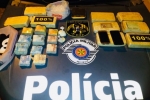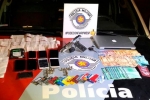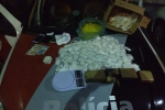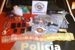 Com as suspeitas a polícia encontrou uma quantia de drogas e materiais utilizados na prática do crime