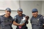 Os policiais realizaram a manobra de Heimlich, o que fez com que a pequena bebê voltasse a respirar e começasse a chorar.