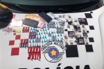 Os policiais apreenderam mais de 800 gramas de drogas, além de aparelhos celulares e dinheiro. Dois homens foram presos.