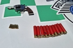 Um revólver e munições foram encontradas por uma equipe da PM Ambiental