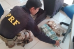 Três homens estavam levando o dinheiro no fundo falso de uma mala
