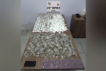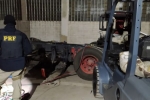 No local, dois caminhões foram encontrados, além de um carregador de água e bloqueador de GPS; ninguém foi preso.