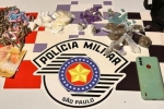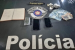 Polícia apreendeu dinheiro, celular e mais de 290 porções de drogas durante a ocorrência.