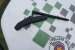 Ao fiscalizar a propriedade, três armas foram encontradas ? duas de fogo e uma de pressão