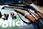 Também foram encontradas armas no local