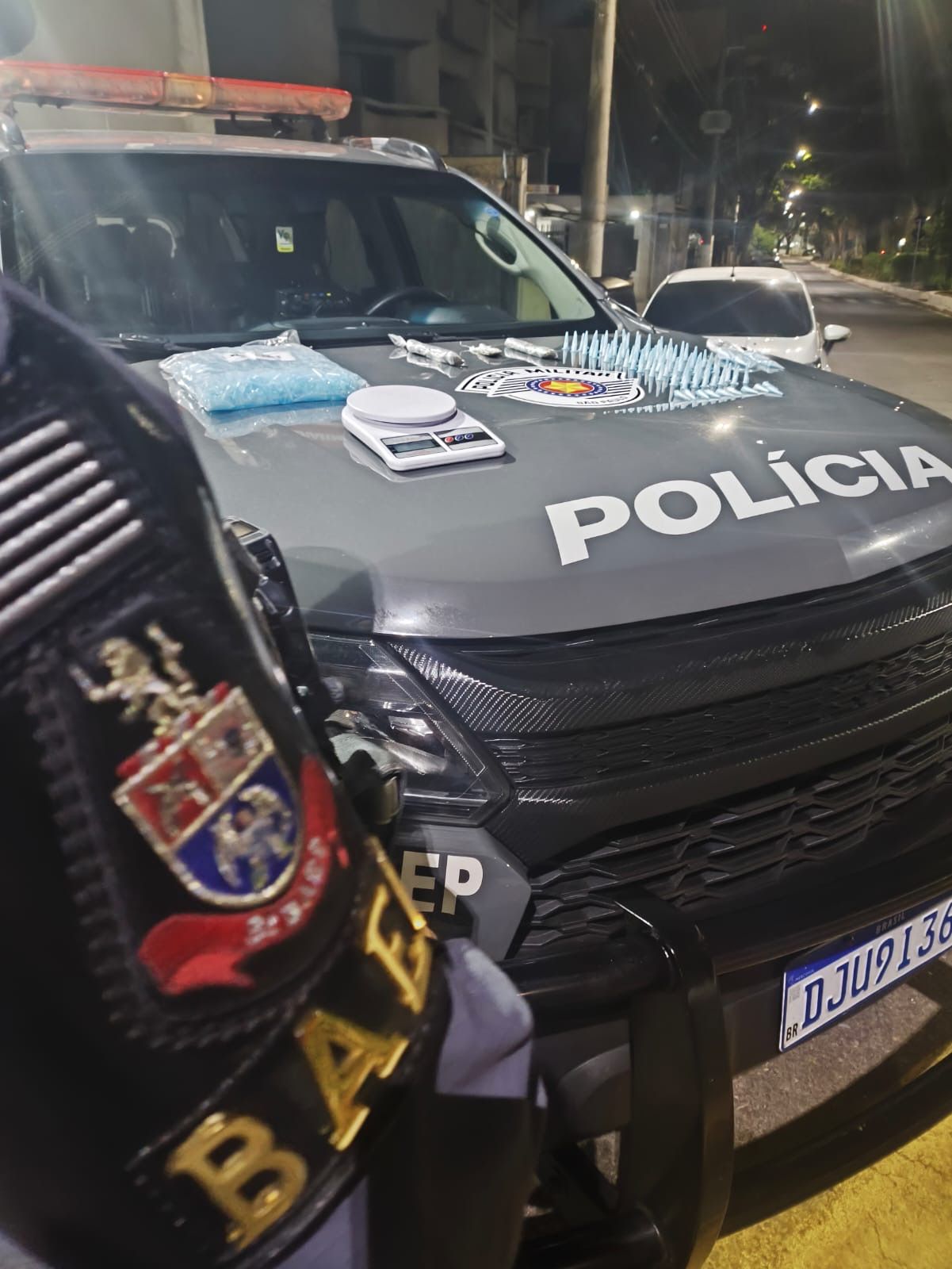 Com os suspeitos, os policiais apreenderam 134 eppendorfs de cocaína, 23 porções de maconha, diversos recipientes para acondicionamento da droga, uma balança de precisão e dois celulares.