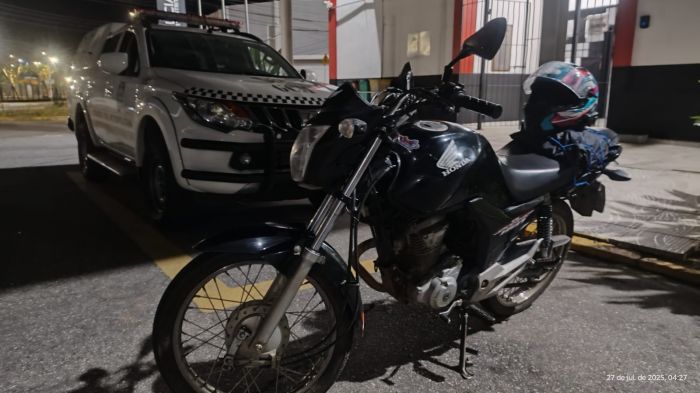 Os dois ocupantes foram levados à delegacia, onde o caso foi registrado como receptação. A motocicleta foi apreendida e será devolvida ao verdadeiro dono.